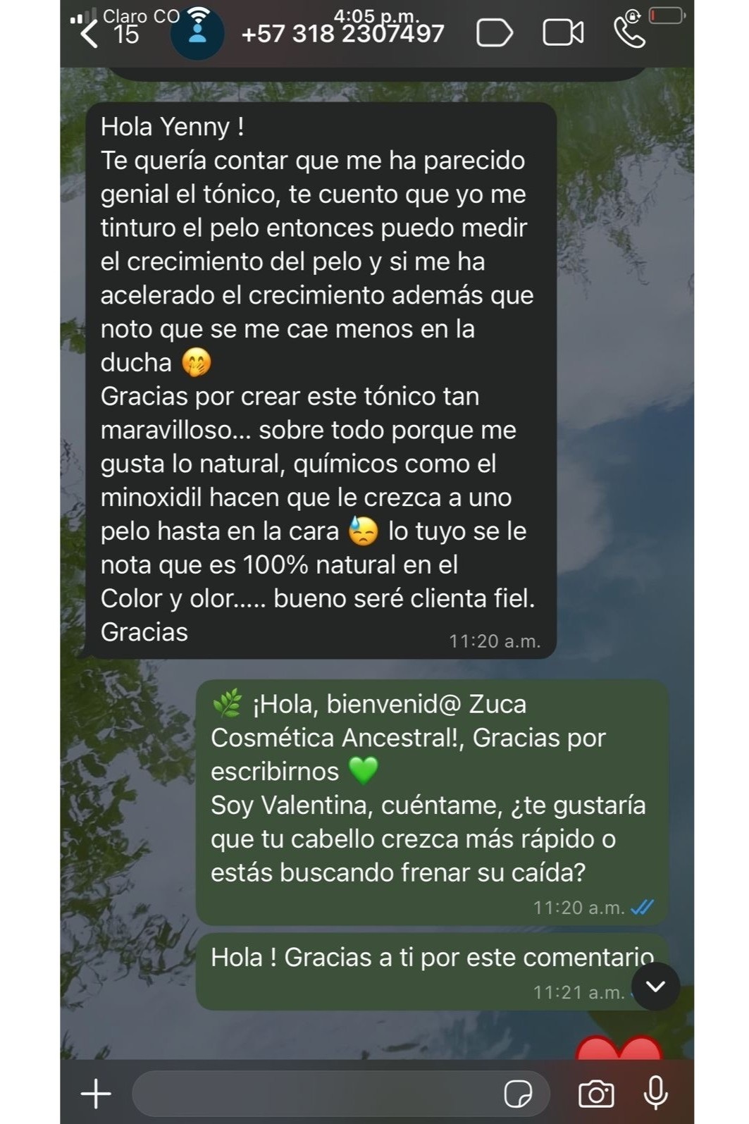 Recuperar la fuerza de tu cabello no tiene por qué depender de químicos agresivos. El Tónico Zuca se ha convertido en nuestro producto estrella porque una comunidad creciente de personas ya ha comprobado su efectividad. Nuestra fórmula artesanal realiza una verdadera 'terapia de choque' en el folículo para revitalizarlo desde la raíz con el poder del romero, la ortiga y el jengibre.
